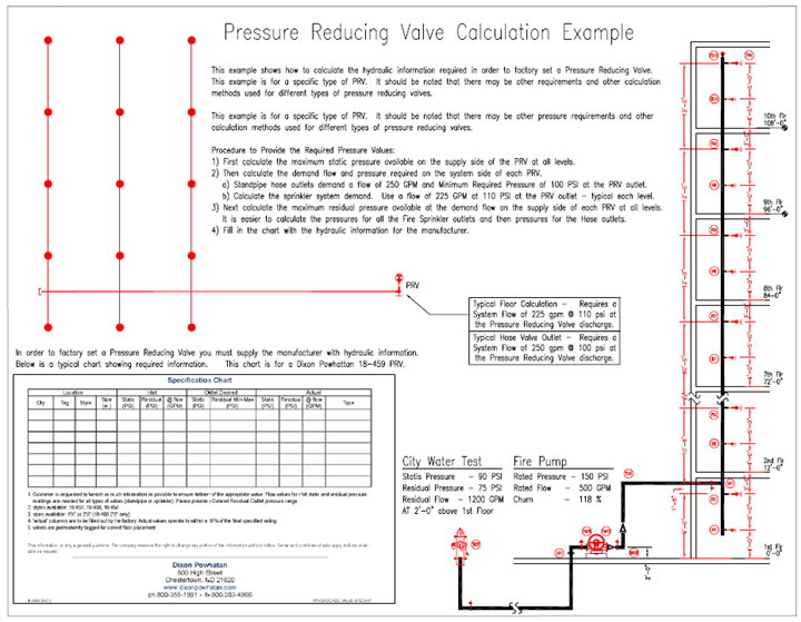 The following is a description and example of how to obtain the necessary information to utilize pressure reducing valves in your systems. The PRV manufacturer will require static and residual supply side pressures as well as system side demand in order to calibrate the valves.