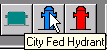 The City Supply Test Point button enters a test point for a city water supply. Clicking the red hydrant opens a dialog for entering water supply information. Pressing the red button again removes it.