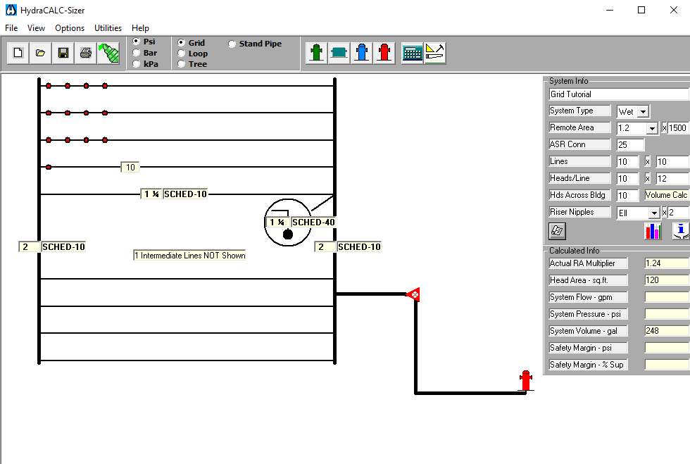 Open HydraCALC V50 and start a new file. Go to View > HydraCALC Sizer. Set up a grid as shown here.
